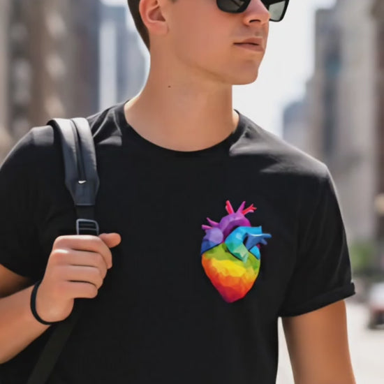 Playera manga corta estampada con un corazón geometrico de colores