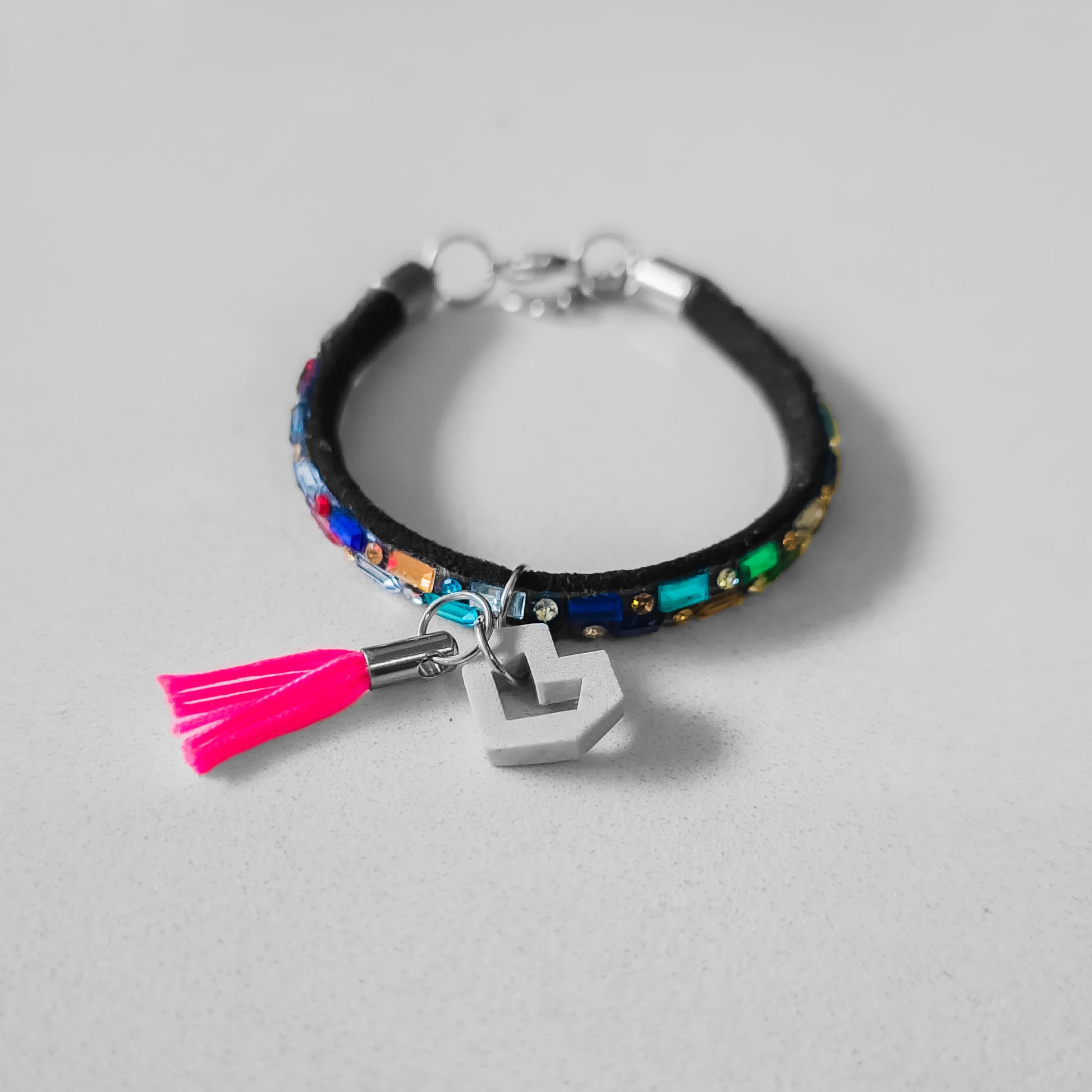 Pulsera con un pequeño corazón hecho de concreto a mano.