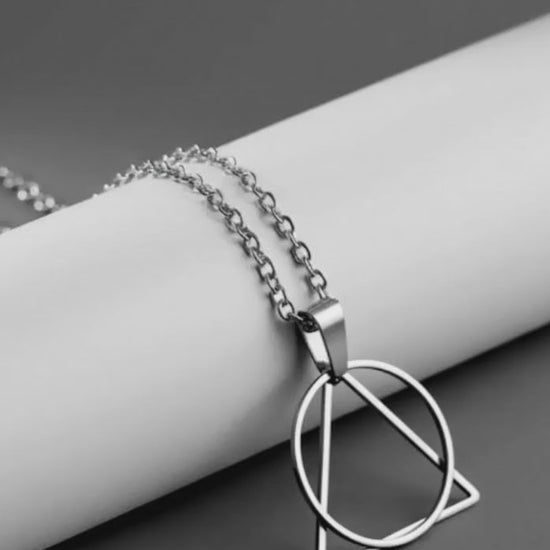 Collar con un dije triangular y circular de Acero Inoxidable símbolos de la Armonía y Protección