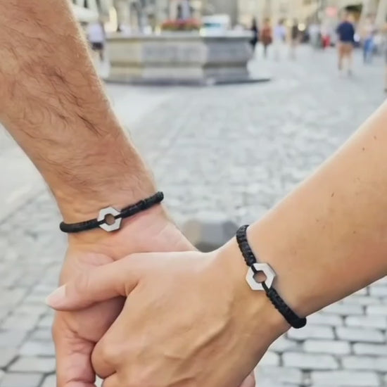 LOVERS BLACK, SET PULSERAS CON HEXAGONO SIMBOLO DE UNION