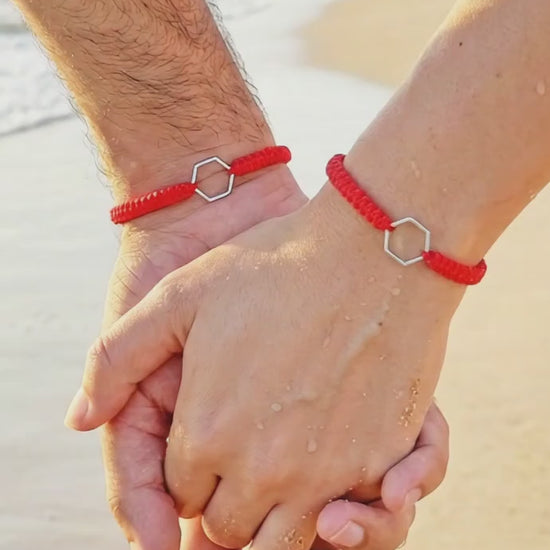 LOVERS RED, SET PULSERAS CON HEXAGONO DE ACERO SIMBOLO DE UNION