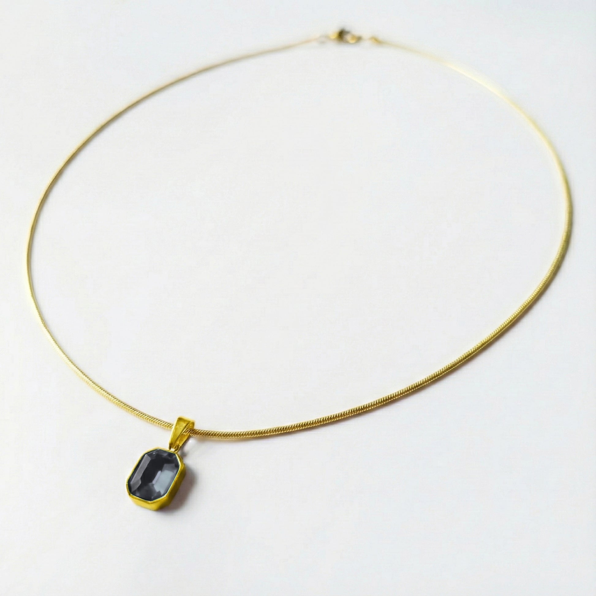 Collar de acero inoxidable con pequeño dije cristal de colores