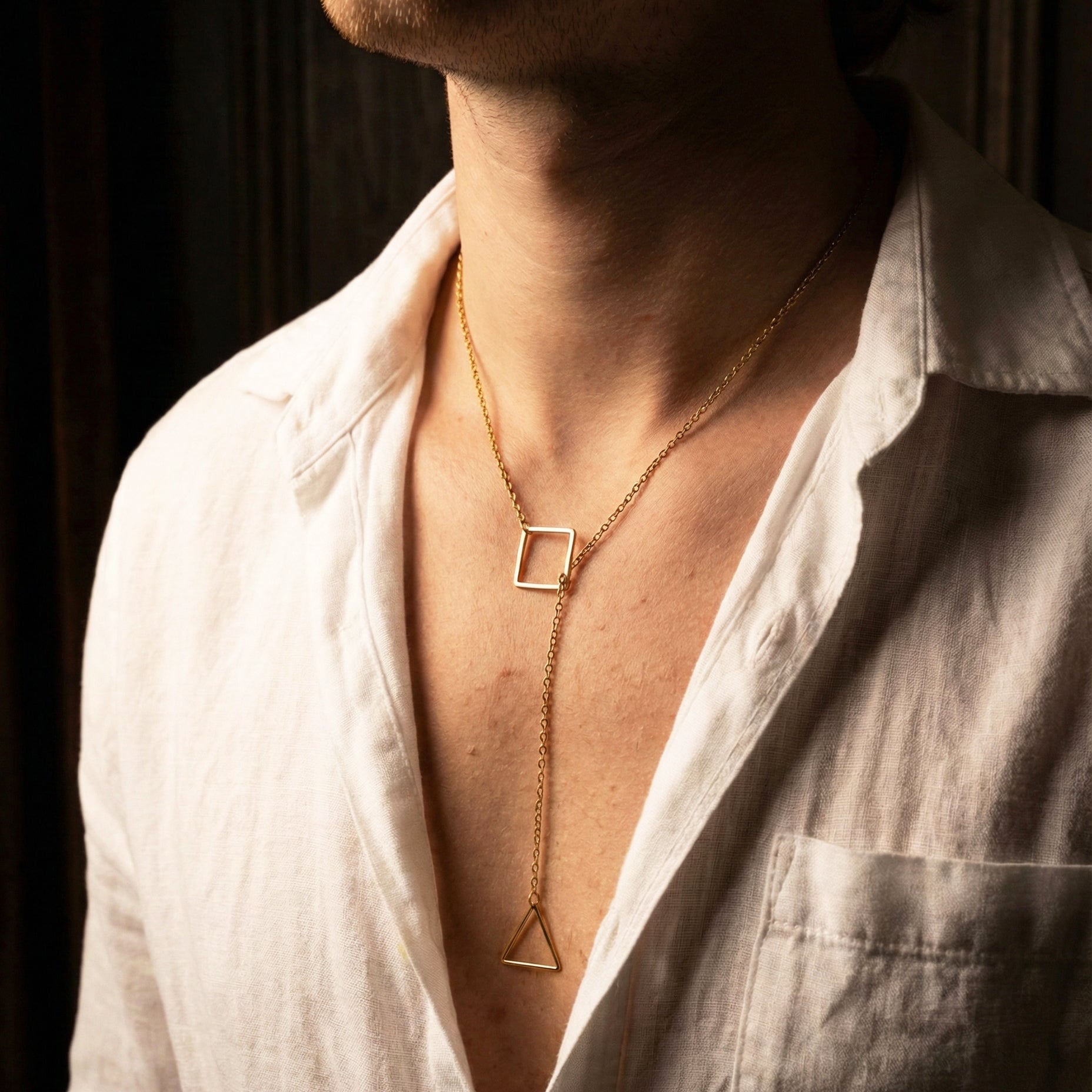 Collar con un dije cuadrado y triangular de Acero Inoxidable
