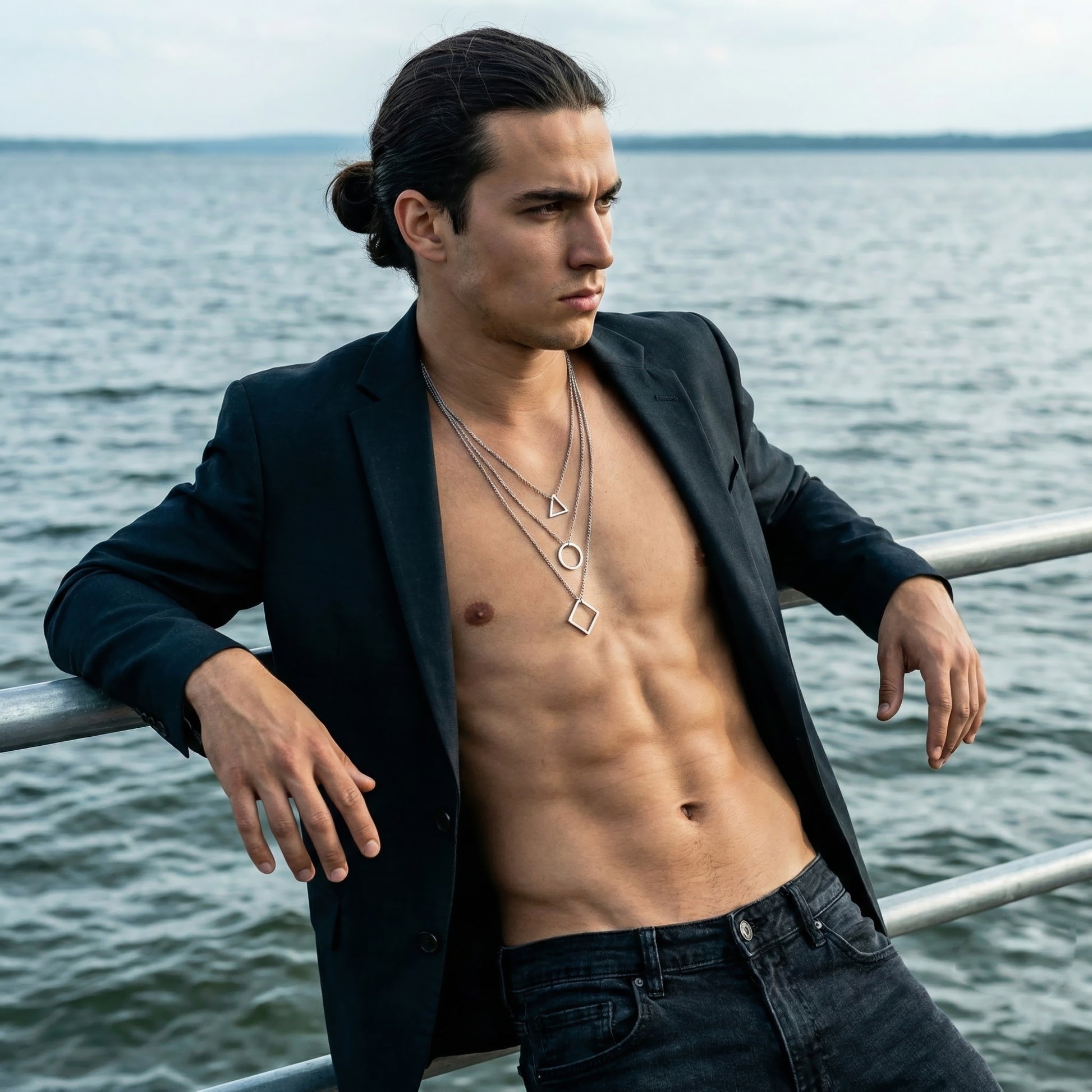 Necklace with triple chain and geometric pendants in Stainless Steel