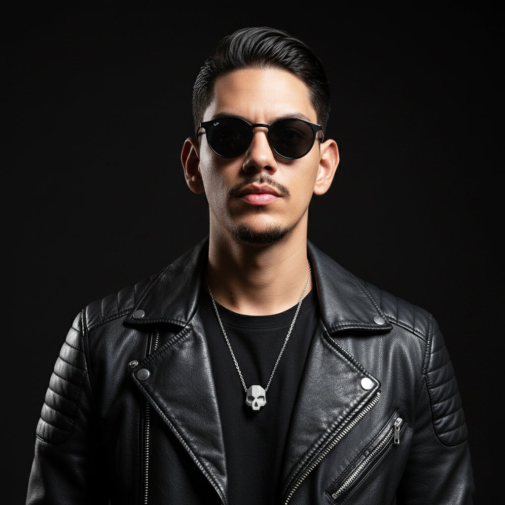 Necklace with Geometric Skull pendant made of concrete.