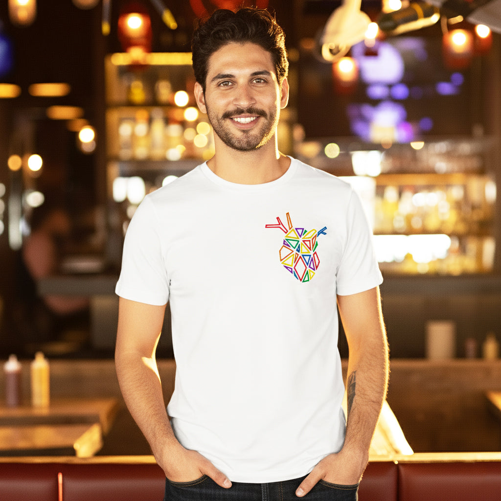 Short-sleeved T-shirt printed with a colorful geometric heart