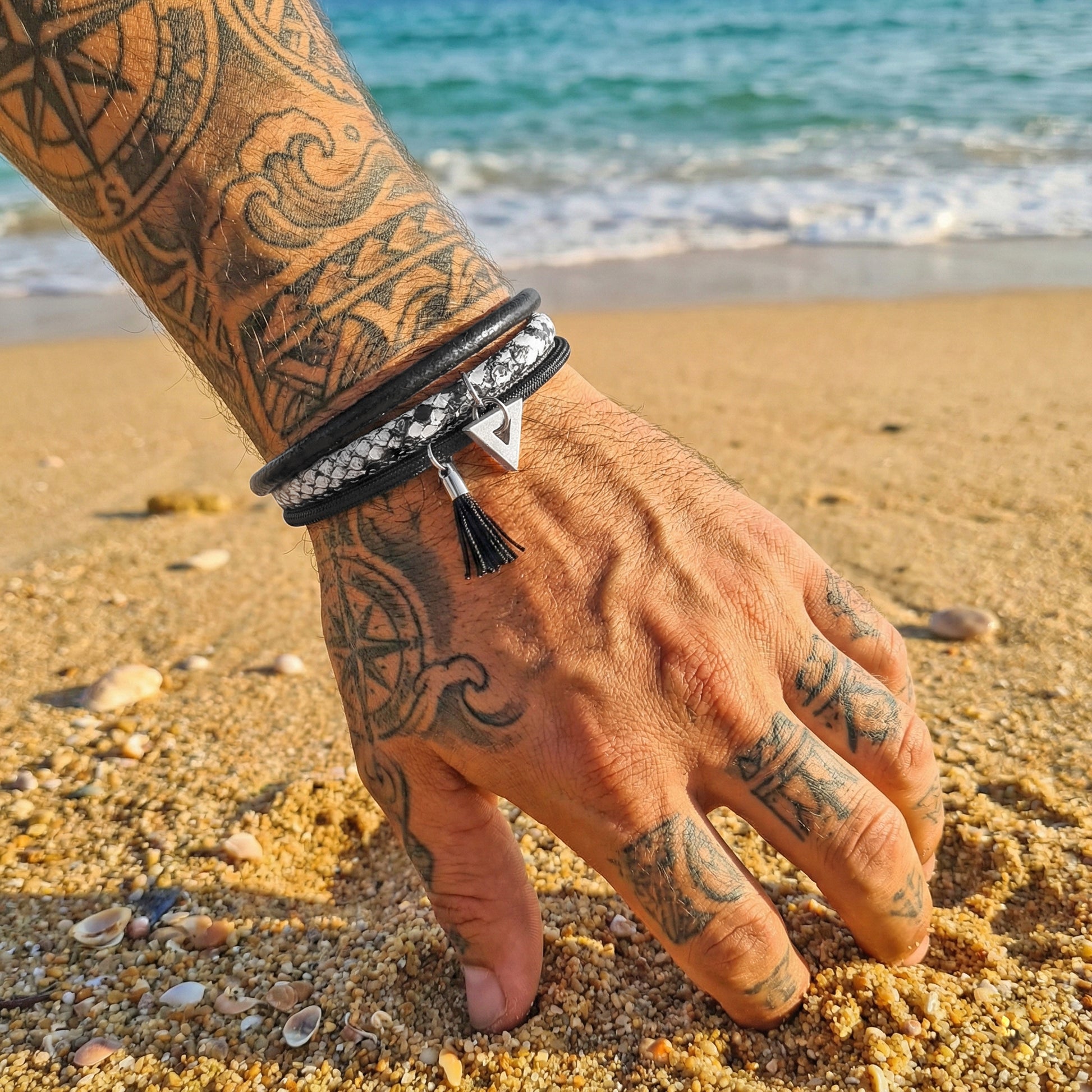 Bracelet with a small skull made of concrete by hand.