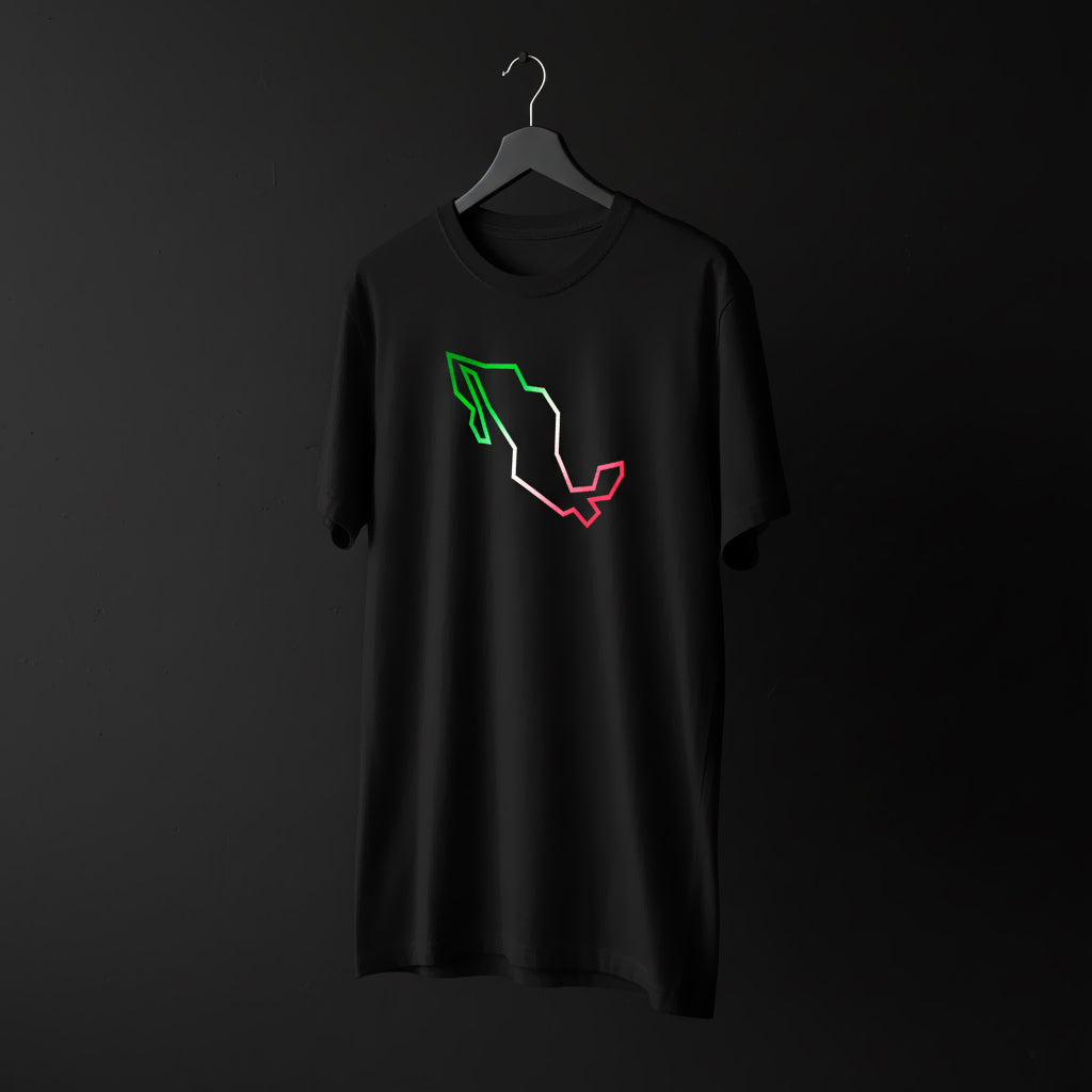 Short-sleeved T-shirt printed with the geometric map of Mexico.