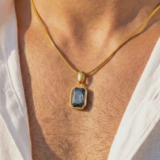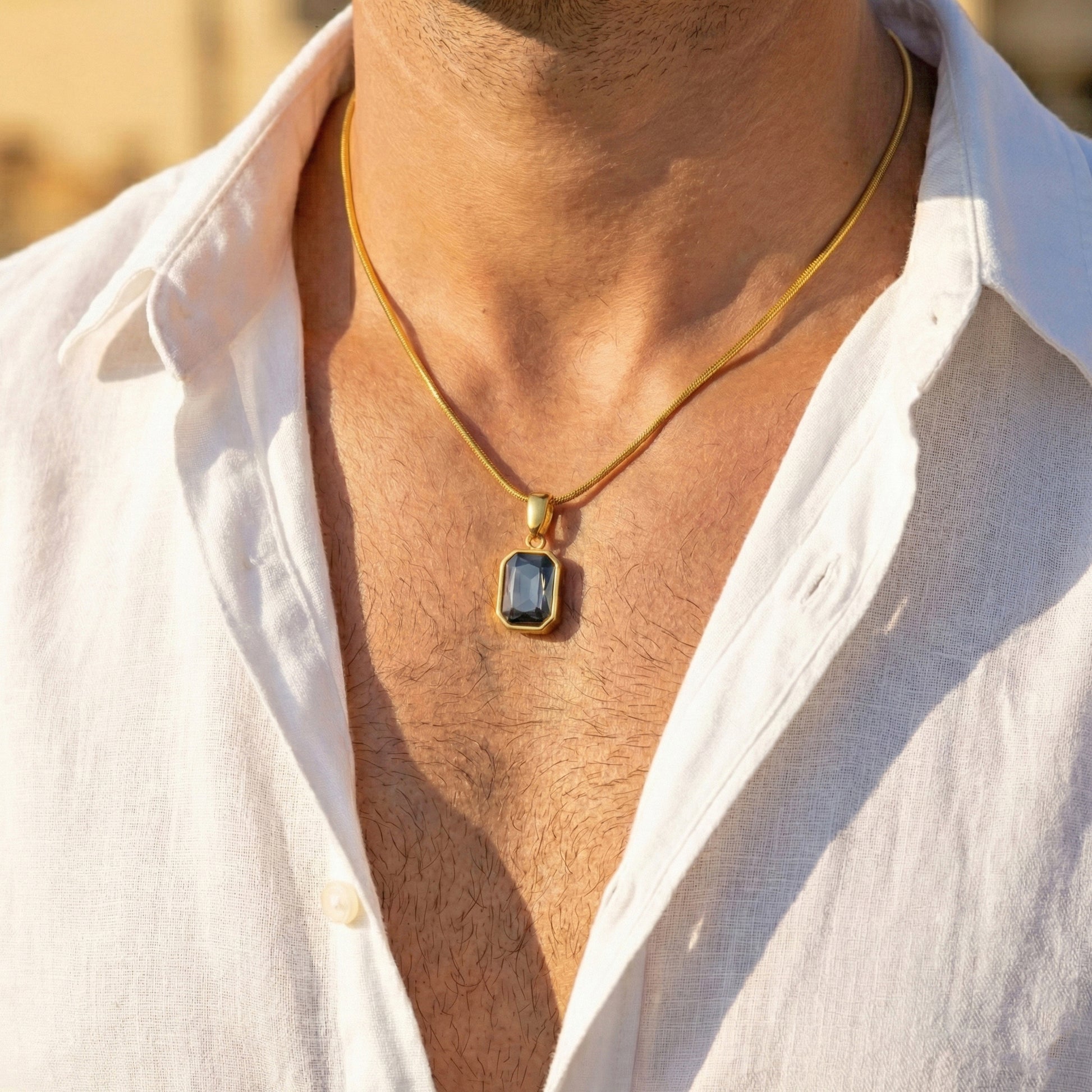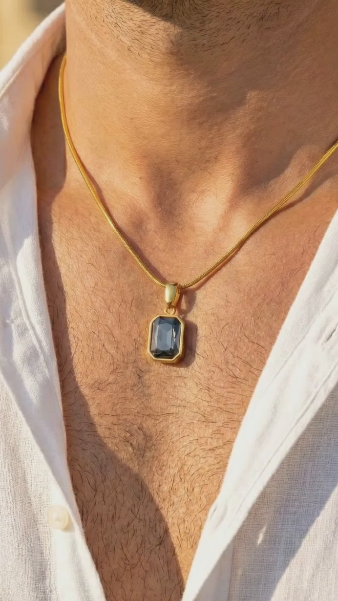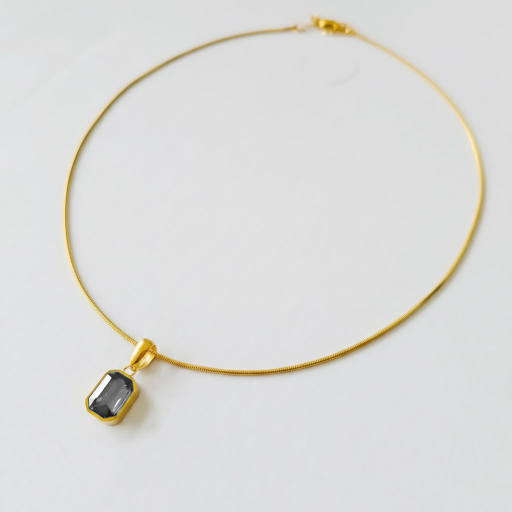 Collar de acero inoxidable con pequeño dije cristal de colores