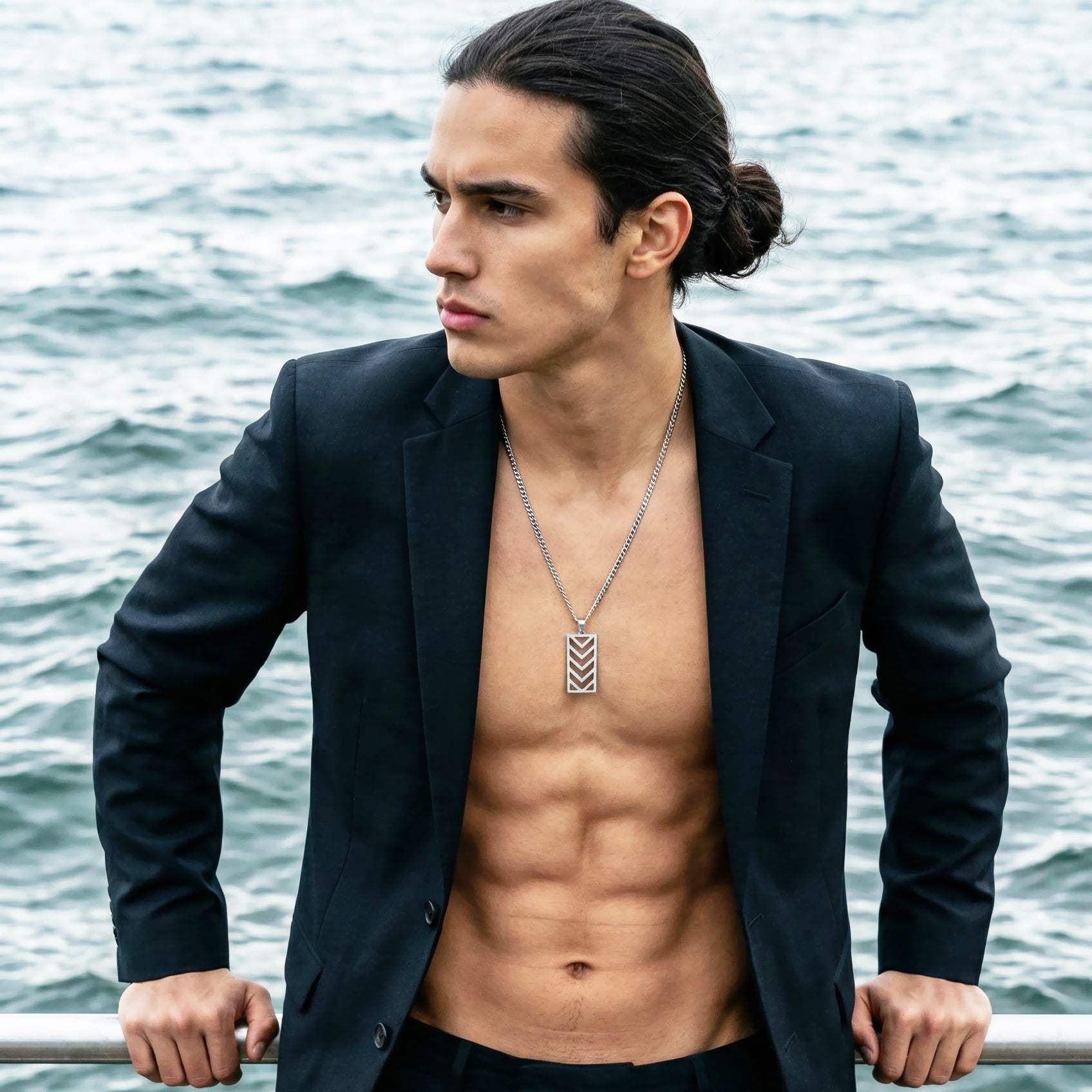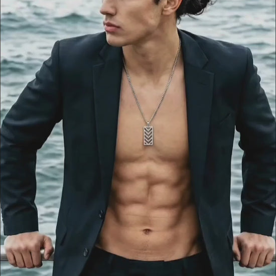 Necklace with 3 interlocking triangles made of concrete by hand.