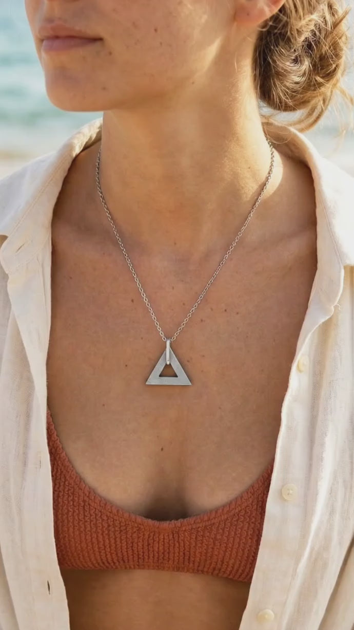 Necklace with a triangle made of concrete by hand.
